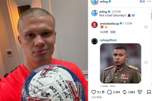 哈蘭德也在賽后通過(guò)社媒曬出了隊(duì)友們簽名的足球,并調(diào)侃道:“周六過(guò)得還不錯(cuò)????”