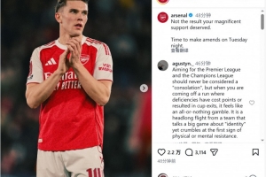 阿森納社媒向球迷道歉:你們的支持未換來應(yīng)得的結(jié)果,我們會彌補