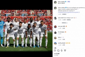 作為本場比賽的場上隊長,盧寧在賽后通過社媒曬出全隊合照并配文:“雖然結(jié)果不如人意,但這一切還沒有結(jié)束,我們會戰(zhàn)斗到最后一刻??感謝大家一直以來的支持?。?!”