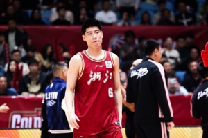 浙江球員程帥澎本場比賽手感不佳,他上下半場運動戰(zhàn)都只投進一球,罰球命中率也不理想。