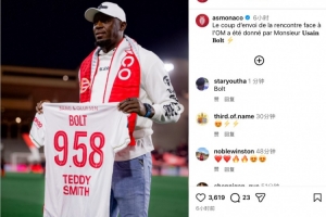 摩納哥官方ins寫道:“歡迎博爾特先生來到現(xiàn)場,為球隊與馬賽的比賽開球。”