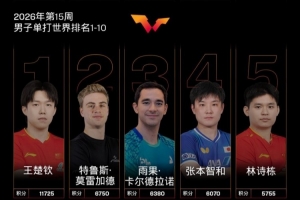 體育資訊4月6日訊 國際乒聯(lián)2026年第15周世界排名公布,男子單打,中國隊球員王楚欽位列第一,林詩棟位列第五。女子單打,中國隊球員孫穎莎、王曼昱、陳幸同、蒯曼位列前四。