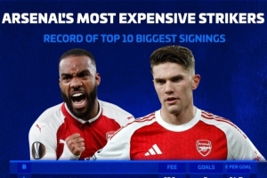 阿森納隊(duì)史前鋒最貴引援排名(每球花費(fèi),僅統(tǒng)計(jì)擔(dān)任中鋒或二前鋒比賽):