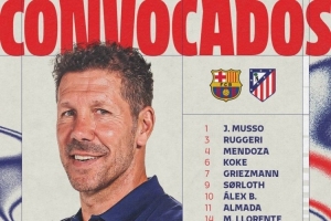 體育資訊4月7日訊 北京時(shí)間4月9日凌晨3點(diǎn),歐冠1/4決賽首回合馬競(jìng)將客戰(zhàn)巴薩,馬競(jìng)公布了此役球隊(duì)大名單。