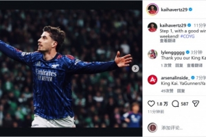 哈弗茨社媒曬出慶祝進球的照片,配文:“第一步,拿下一場美妙的勝利,周末見!”