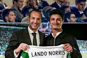歐冠1/4決賽首回合,葡體主場0-1不敵阿森納,F(xiàn)1世界冠軍、邁凱倫車手諾里斯現(xiàn)場觀戰(zhàn),與他一同觀戰(zhàn)的還有前女友科爾塞羅,諾里斯同時獲贈一件葡體4號球衣。
