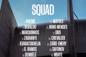 前鋒:7-克瓦拉茨赫利亞、9-貢薩洛·拉莫斯、10-登貝萊、14-杜埃、49-姆巴耶