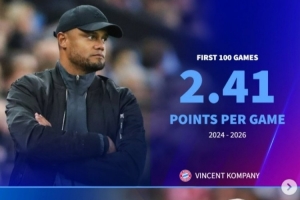 體育資訊4月8日訊 在歐冠淘汰賽首回合,拜仁2-1擊敗皇馬,孔帕尼也迎來執(zhí)教拜仁100場(chǎng)里程碑。德轉(zhuǎn)盤點(diǎn)了拜仁多位名帥在前100場(chǎng)比賽場(chǎng)均積分情況,具體如下: