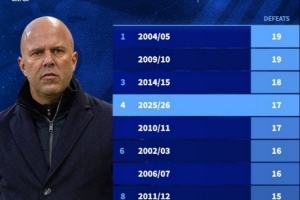體育資訊4月9日訊 在歐冠淘汰賽首回合,利物浦0-2不敵巴黎。這是利物浦本賽季各項(xiàng)賽事第17場(chǎng)失利,以下為利物浦本世紀(jì)單賽季輸球場(chǎng)次榜: