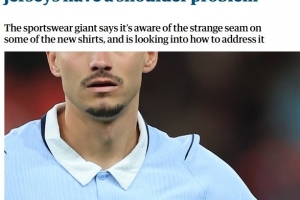 耐克在給《衛(wèi)報》的一份聲明中承認了球衣肩部設(shè)計問題,并表示正在研究可能的解決方案:“在最近的國際比賽期間,我們注意到我們的國家隊球衣在肩縫處存在一個小問題。雖然不影響球衣性能,但整體外觀沒有達到應(yīng)有的標準?!?/p>