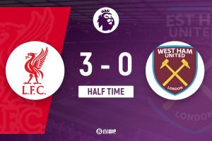 上半場(chǎng)傷停補(bǔ)時(shí)4分鐘,半場(chǎng)結(jié)束,利物浦暫3-0西漢姆聯(lián)。