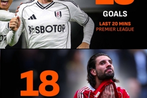 本賽季在英超賽場上,富勒姆在比賽最后20分鐘共打進(jìn)18球,而利物浦在這個(gè)時(shí)間段里則丟了18球,兩隊(duì)的表現(xiàn)大相徑庭。