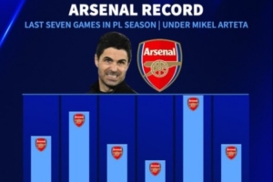 體育資訊4月11日訊 阿森納在本輪英超爆冷主場1-2不敵伯恩茅斯,數(shù)據(jù)統(tǒng)計顯示塔帥執(zhí)教阿森納的賽季最后7輪聯(lián)賽從未拿滿分數(shù)。