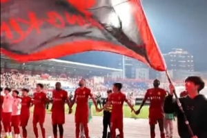 體育資訊4月11日訊 中超第5輪,重慶銅梁龍主場(chǎng)2-1擊敗武漢三鎮(zhèn),取得中超兩連勝。賽后,本場(chǎng)比賽停賽的李鎮(zhèn)全和沒有上場(chǎng)的隊(duì)長(zhǎng)向余望現(xiàn)身球場(chǎng),和隊(duì)友一起與球迷互動(dòng),慶祝這場(chǎng)來之不易的勝利。
