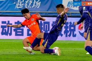 津門虎十人應(yīng)戰(zhàn)!黃嘉輝蹬到金永浩小腿,VAR介入后黃牌改直紅