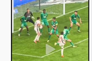 楊天嬰表示:球迷視頻角度,這球就是打在廖力生離開身體的手臂上,然后改變方向進球的。