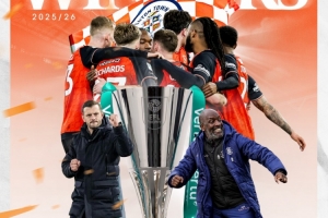 體育資訊4月13日訊 英錦賽決賽,盧頓以3-1的比分戰(zhàn)勝斯托克港奪冠,34歲少帥威爾希爾拿到執(zhí)教生涯首個冠軍。