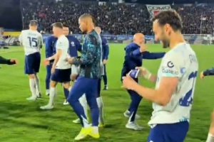 恰爾汗奧盧賽后與勞塔羅擁抱慶祝,并給后者戴上隊(duì)長袖標(biāo)