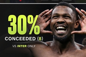科莫本賽季意甲總計丟掉26球,其中8球來自對陣國米的比賽,占比約30%。
