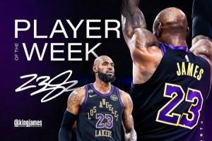 這是詹姆斯生涯第70次當選周最佳球員,再創(chuàng)歷史第一紀錄。