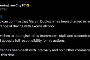 官方寫道:“俱樂部確認(rèn),杜克施因涉嫌酒后駕車罪名被起訴。”