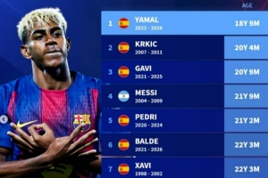 體育資訊4月15日訊 在歐冠1/4決賽次回合,巴薩2-1擊敗馬競,亞馬爾達成巴薩生涯150次出場里程碑。德轉(zhuǎn)盤點了巴薩隊史達成150次出場最年輕紀(jì)錄榜,具體如下: