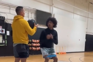 朱正寫道:“和庫里體能訓(xùn)練團隊的夏天特訓(xùn)?!弊鳛閹炖锲放坪灱s的首位中國球員,朱正去年夏天曾參與庫里中國行活動。