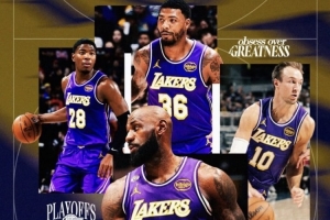 值得一提的是,在這張湖人官方活動宣傳海報中亮相的四位球員為詹姆斯、斯瑪特、八村塁、肯納德,并無兩位傷員東契奇和里夫斯的身影。