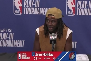 體育資訊4月15日訊 NBA西部附加賽,開拓者114-110力克太陽。賽后朱·霍勒迪接受了記者采訪,以下為采訪全文。