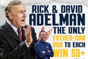 據(jù)統(tǒng)計,大衛(wèi)·阿德爾曼和里克·阿德爾曼成為歷史首對均帶隊50+勝的父子教練組合。