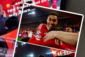 體育資訊4月17日訊 拜仁在本輪歐冠主場4-3逆轉(zhuǎn)絕殺皇馬,迪亞斯和奧利塞在比賽最后時(shí)刻連續(xù)轟出兩腳精彩世界波,也引燃了整個(gè)安聯(lián)球場,奧利塞進(jìn)球后終場哨隨即響起,部分激動(dòng)的拜仁球迷甚至沖進(jìn)了場內(nèi),導(dǎo)致攝影師受傷。