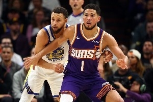 布克(場(chǎng)均26.1分,6次助攻)是一名技術(shù)細(xì)膩且高效的三威脅得分手,他是太陽的頭號(hào)攻擊箭頭,也是這支極其依賴三分球的球隊(duì)制造罰球機(jī)會(huì)的核心。勇士是聯(lián)盟中僅有的四支在場(chǎng)均三分命中數(shù)(14.8個(gè))和出手?jǐn)?shù)(40.8次)上都超過太陽的球隊(duì)之一,而太陽陣中并沒有那種能在進(jìn)攻發(fā)起點(diǎn)給勇士制造麻煩的靈敏型后衛(wèi)與鋒線。
