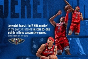 他也成為了過(guò)去30個(gè)賽季中,NBA僅有的三位新秀之一,能夠在連續(xù)三場(chǎng)比賽中每場(chǎng)砍下35+分。另外兩位是艾弗森和特雷·楊。