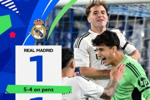 此役上半場以利亞·李為巴黎圣日耳曼U19先拔頭籌,下半場第83分鐘利貝托·納瓦斯克斯扳平比分,兩隊最終戰(zhàn)成1-1平局,進入點球大戰(zhàn),最終皇馬U19在點球大戰(zhàn)中5-4取勝,晉級決賽。