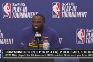 體育資訊4月18日訊 NBA附加賽,勇士96-111不敵太陽(yáng)。賽季結(jié)束。賽后德雷蒙德·格林接受了媒體采訪,以下為采訪全文。