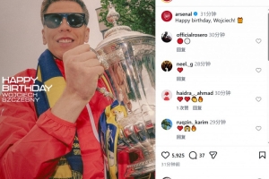 阿森納官方社媒曬出什琴斯尼的生日海報,配文:“生日快樂,沃伊切赫!”