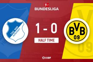 上半場補時6分鐘,霍村1-0多特。