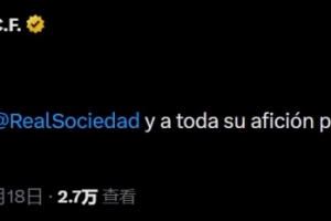 皇馬官方寫(xiě)道:“祝賀皇家社會(huì)及其所有球迷?shī)Z得國(guó)王杯冠軍?!?/p>