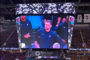 賽前介紹環(huán)節(jié),球迷給馬刺舊將、開(kāi)拓者主教練斯普利特送上歡呼。