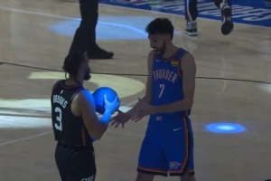 霍姆格倫:“我同樣也不會把球遞給他,所以,我沒有往心里去。你知道,他有他自己打球時的個性,我覺得他是想把球先給他的隊友,但是,在比賽開始前,我還是摸到球、找到了手感。所以一切都很好?!?/p>