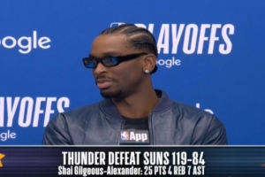 體育資訊4月20日訊 NBA季后賽西部首輪G1,雷霆119-84大勝太陽(yáng)35分。亞歷山大接受了媒體采訪,以下為完整采訪內(nèi)容。