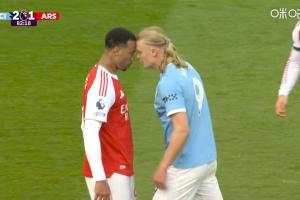 體育資訊04月20日訊 英超焦點(diǎn)戰(zhàn)曼城對(duì)陣阿森納,第83分鐘,加布里埃爾與哈蘭德沖突,兩人各染一黃。