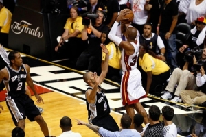 最后19.4秒熱火落后3分,詹姆斯三分不中,波什搶下關(guān)鍵前場籃板,隨后將球交給阿倫,后者在接球時順勢撤出三分線,隨后拔起三分,整個動作一氣呵成,球也空心命中籃筐。在隨后的加時里,熱火氣勢如虹拿下比賽,并在搶七中戰(zhàn)勝馬刺,實現(xiàn)衛(wèi)冕。