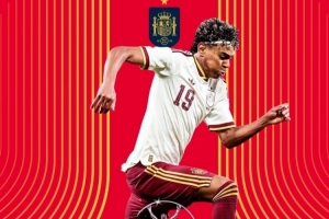 西班牙國(guó)家隊(duì)官推曬出海報(bào),祝賀亞馬爾獲獎(jiǎng),并配文寫(xiě)道: