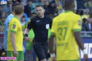 在上周末的第30輪法甲聯(lián)賽,南特主場(chǎng)1-1戰(zhàn)平布雷斯特。比賽第60分鐘,布雷斯特長傳發(fā)起進(jìn)攻,南特球員塔比布在禁區(qū)外對(duì)布雷斯特球員盧克·佐格貝犯規(guī)。主裁判紀(jì)堯姆·帕拉迪斯先是向塔比布出示黃牌,但之后VAR介入,主裁判到場(chǎng)邊觀看視頻回放后,改判塔比布紅牌罰下。而南特主帥哈利霍季奇也因?yàn)榭棺h這次改判吃到紅牌。