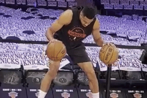 體育資訊4月23日訊 近日,老鷹球員CJ·麥科勒姆賽前在場邊練習(xí)控運。