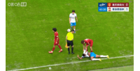 阮奇龍爭(zhēng)搶球權(quán)時(shí)飛踹到雷森德腹部,主裁判向阮奇龍出示黃牌