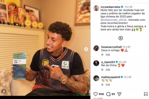 克雷桑在社媒寫道:“非常高興今天在家里收到了Sofascore頒發(fā)的2025年度中超聯(lián)賽最佳球員獎項,非常感激獲得認可!所有的榮耀都屬于上帝,希望今年能獲得更多榮譽。”