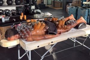 照片中的奧蓬達(dá)正在進(jìn)行拔罐,他從頸部到小腿全部安上了各種材質(zhì)的罐子。意大利媒體介紹稱(chēng),拔罐是一種可以緩解疼痛和放松肌肉的皮膚療法。