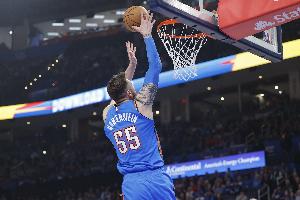 雷霆球員卡森·華萊士出場35分3秒,16投11中(三分5中4),罰球2中1,拿到27分8籃板6助攻1搶斷,正負(fù)值+5。哈滕11分9板1斷2帽。